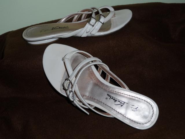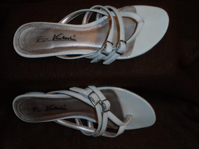 Patogios įspiriamos šlepetės per pirštą. Mažai dėvėtos. Plotis reguliuojamas su dirželiais. Odos pakaitalas.