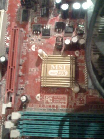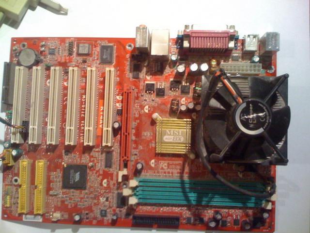 Motininė plokštė MSI AGP 8x ir procesorius. Procesorius puikios būklės, o motininė pradėjo rodyti charakterį ir buvo pakeista. Charakterio rodymas yra pc įsijungimas/neįsijungimas priklausomai nuo vėjo krypties. Guldydavau pc ant šono, kad įsijungtų.