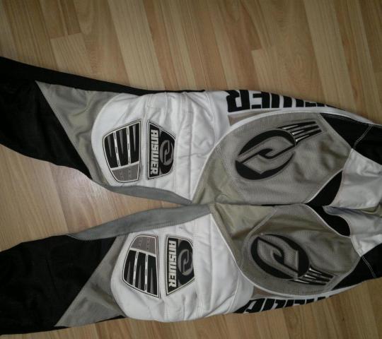 Profesionali lenktynininko Apranga (garsus brandai): Salmas TKD Double Shield (NAUJAS) Ornamentuotas, dvigubu stiklu, atsivercia veidas 190Lt Apsauginė liemenė (krosiniui. Dydis M) 300 Apsaugines kelnes (tinka krosiniui. Dydis 43 (M) 320Lt Fox Racing Shoes (motokroso lenktynininko batai, naudoti, virsutinė sagtis sunkiai uzsisega, visa kita puikiai. Dydis 42-43.1/2) 300Lt kokybe geriau nei gera, salmas naujas, pora kartu uzsidejes buvau, batai padrenkti, reikto kokio juodo vakso, o apranga naudota pora