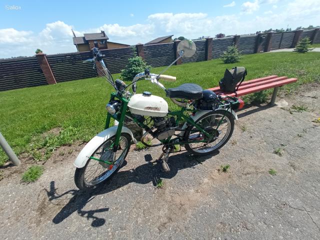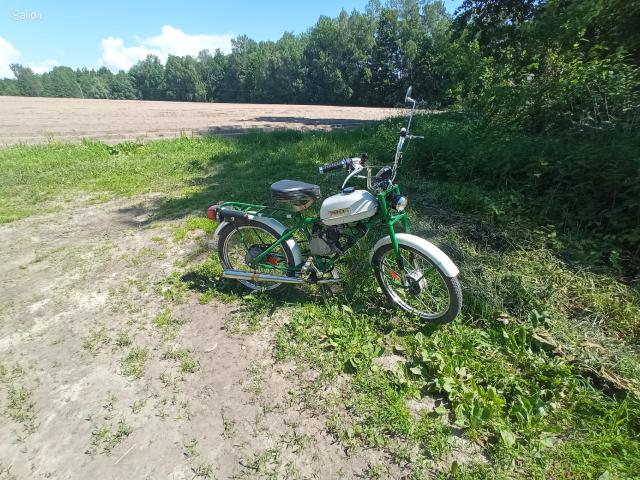Parduodamas motorinis dviratis Riga 13 su 80cc varikliu... Kuriasi, važiuoja gerai, šviesos veikia... Kaina 360 eur. (derinama) Tel. 864405230
