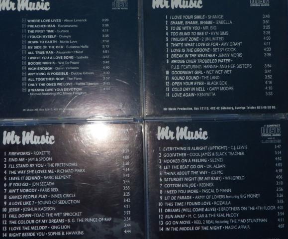 "Mr Music hits" rinkiniai, track listai matosi. Yra šie: 1991-4; 1992-4; 1994-9, -10; 1998-2; 1999-3, -9, -11; 2000-1; 2001-5; 2003-5.