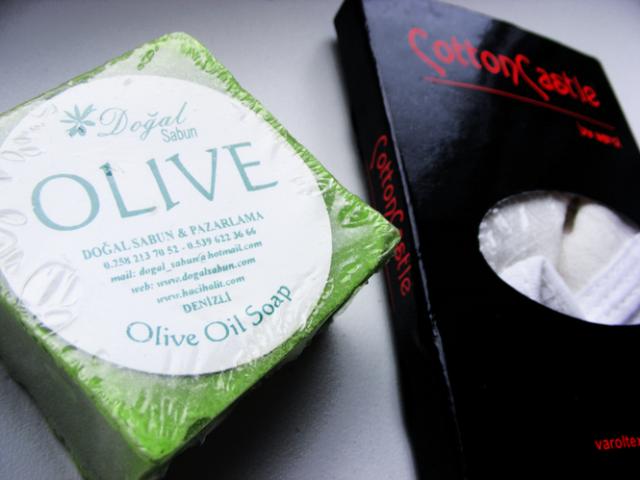 Muilas ir kempinė (tokia pirštinė, kuria trint kūną reikia), visiškai nauji. Labai skaniai kvepia muilas (: