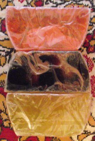 Rygos muilo manufaktūra. Liko raudonas, geltonas ir rudas.