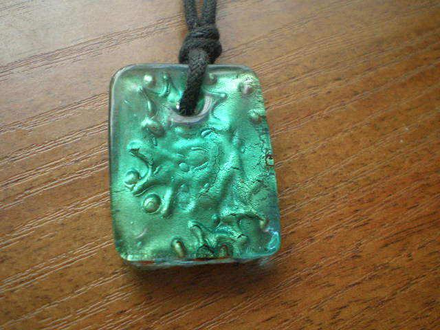 Murano stiklo dvipusis pakabukas iš Ibero (žalias ir geltonas)