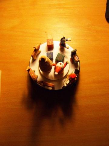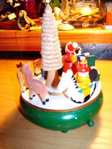 Nauja dezute. Groja kaledine melodija "santa clous is coming to town".