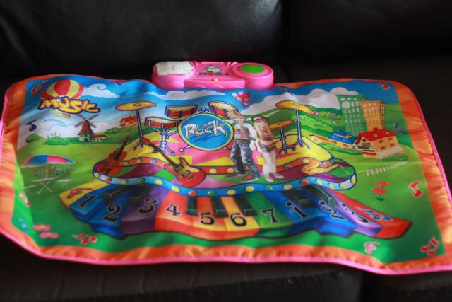 Minkštas kilimėlis su keliais režimais ir daug instrumentų garsų, melodijų, galima groti klaviatūra. Užklijavau garsiakalbį, kad tyliau grotų - bet šiaip jo būklė puiki.