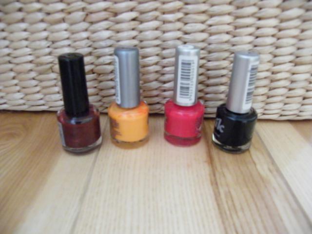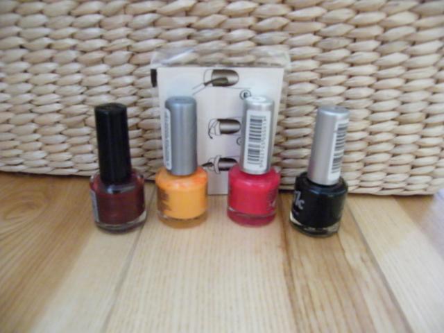 Visokių spalvų nagų lakas ir formelės-lipdukai.