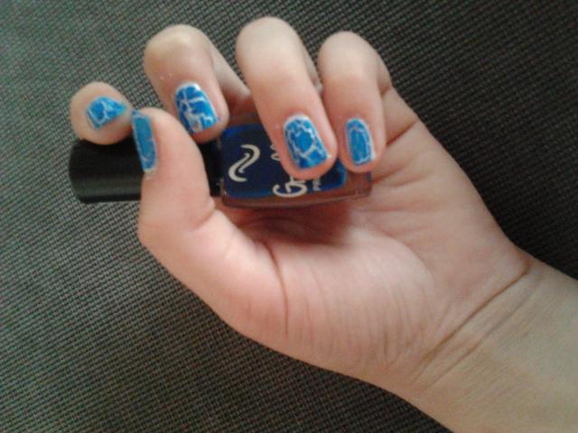 Nagų lakas mėlynos spalvos, padarantis trūkinėjimo imitacija ant nagų