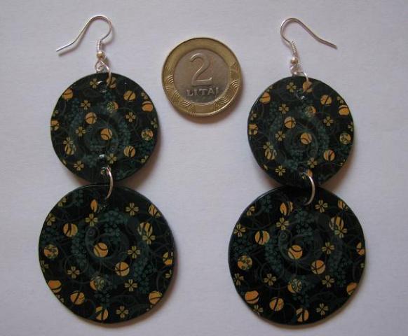 Rankų darbo auskarai iš modelino. Detalės pasidabruotos. Realybėje spalvos ryškesnės.
