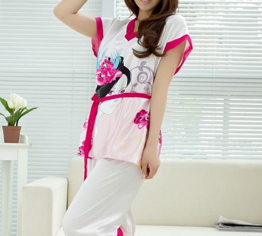 Dvi spalvos. Išmatavimai: Maikė: ilgis 70cm, biustas 102-196cm. Kelnės: ilgis 64cm, liemuo 56-104cm. Medžiaga: šilkas + likra.
