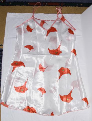 Itin lengvi ir svelnus naktinukai, blizgi medziaga. sleikutes reguliuojamos, taciau viena sugadinta, galima lengvai susitvarkyti,pagal ismatavimus susiuti sleikutes. Dydis- XL/XXL