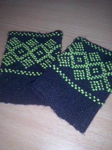 Nuostabios, šiltos riešinės, siuvinėtos žaliais karoliukais :)