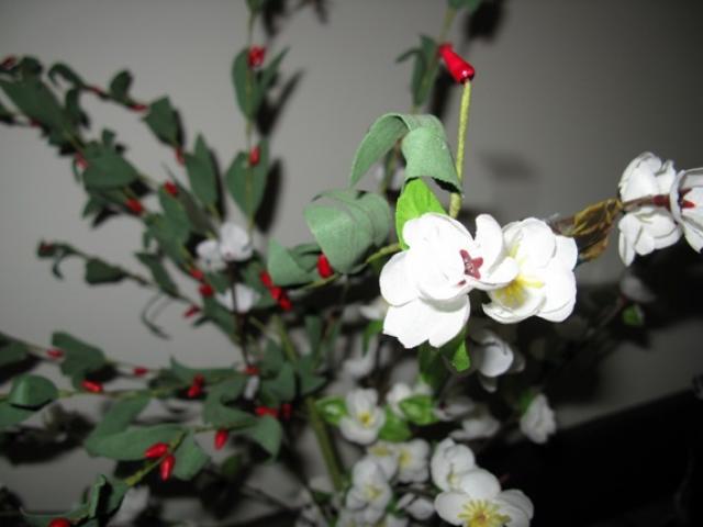 3 šakos dirbtinių obelų žiedų ir viena šaka lapelių su raudonom uogytėm :)