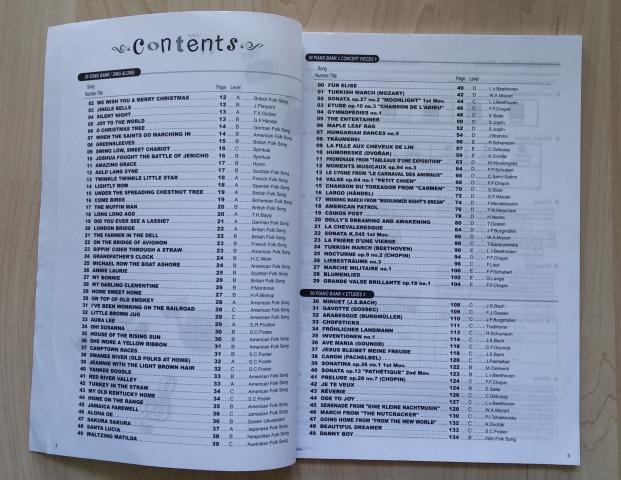 Knyga gauta pirkus sintezatorių "Casio". Kūrinių sąrašą žr. 2 pav. Kūrinių sudėtingumas - pradedantiesiems