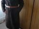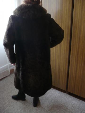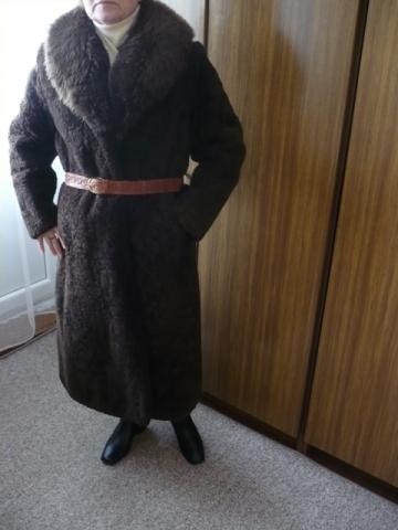Labai šilti natūralaus avikailio tamsiai rudi ilgi kailiniai. Pirkti nauji, užsidėti tik keletą kartų. Modelis 158 cm ūgio, nešioja M 38/40 dydį. Kadangi užsisega sagomis, galima jas persiūti pagal reikalingas konkretaus žmogaus apimtis, todėl tiktų ir didesnį dydį nešiojančioms. Galiu padovanoti ir naujus kabliukus, jei norima perdaryti užsegimą su jais, bet kadangi mažai nešiojau, tai nespėjau persidaryti. Tiesaus kirpimo tai galima nešioti su diržu ir be jo. Rankovės klasikinio tipo—statytos. Apykaklė š