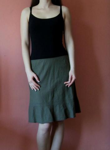 Samaninės spalvos sijonas. Vasarą su juo karšta tikrai nebus. Ilgis - 49-52 cm.