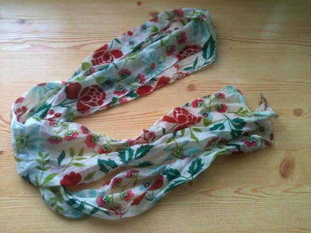 Tikro šilko skarelė su gėlių ornamentais