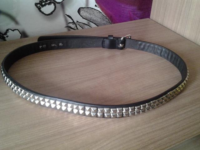 Natūralios odos,labai tvirtas,sunkus, su metalinėmis kniedėmis. Ilgis 109,5 cm plotis 2,5 cm.