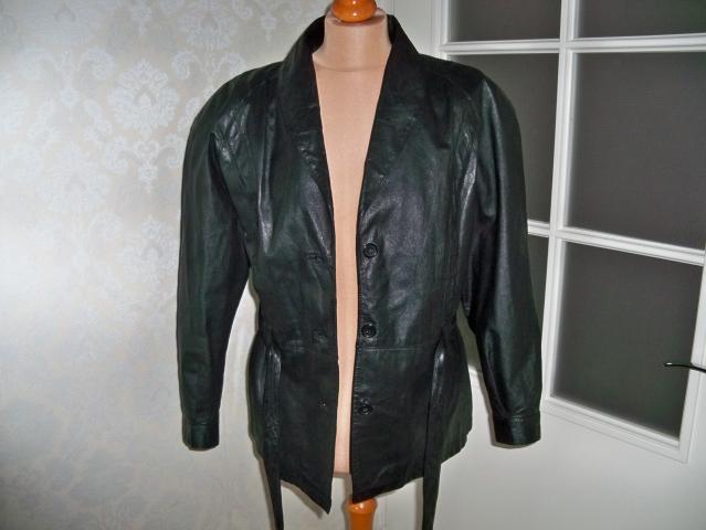 Puiki, kokybiška, lengvutė, ne storos odos. Ilgis 68 cm, per liemenį 90 cm, klubus 104 cm, krūtinę 102 cm, rankovių ilgis nuo apykaklės 72 cm, nuo pažasties 40 cm. Reglano rankovės.Gražus modeliukas, per liemenį susijuosia dirželiu, šonuose , po dirželiu yra įsiūtos gumos.