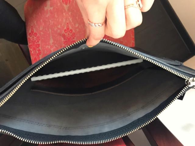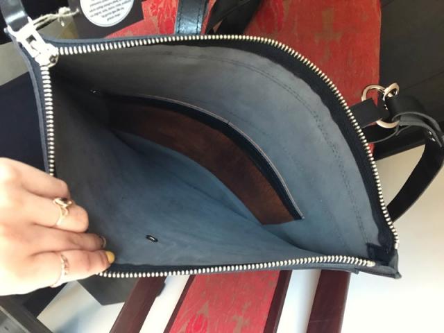Defektu neturi jokiu. Nenesiota nei karto. Nauja. Visa rankine is naturalios odos, vienetine. Viena rankena nusisega. Laisvai telpa A4, beveik gali tilpti ir A3. Pirkta iš http://nerepere.lt/produkto-kategorija/odines-kuprines-rankines/