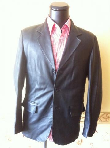 Natūralios odos juodas švarkas