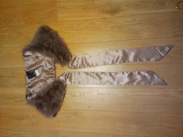 Parduodu naują rožinės spalvos natūralių plunksnų apykaklę. Filma NEXT, M-L dydis (matyti iš etiketės). mokėjau 89 Lt.