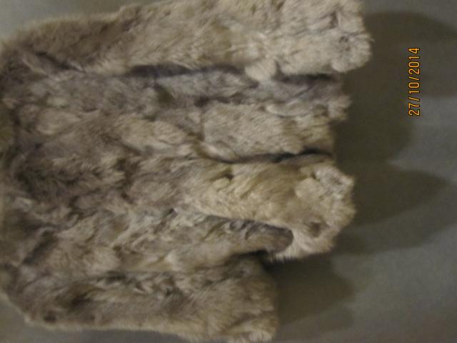 grazus naturalus kailiniai su kapiusonu L -XL d. pilka spalva 43 pieciu juosta 63-64 rankoves 66-67 ilgio