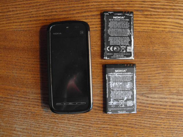 Puikiai veikiantis telefonas turintis dėvėjimo žymių. Yra pakrovėjas, USB kabelis, automobilinio stiklo laikiklis, du keičiami dangteliai ir akumuliatoriai 1320mAh