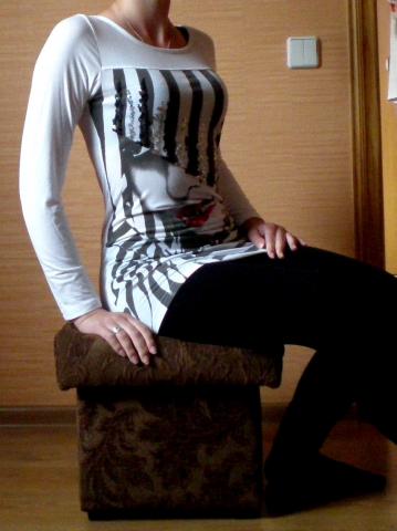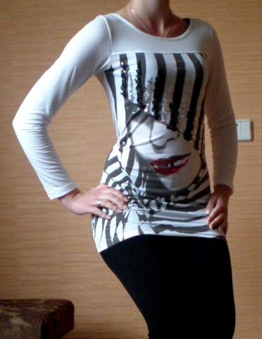NAUJA! Balta palaidinė-tunika ilgomis rankovėmis (su etiketėm). Dydį rašo M/L (nuotraukoje ant S/M). Gražiai aptempia. Ilgis ~73cm. Sudėtis: elastane, polyester, cotton.