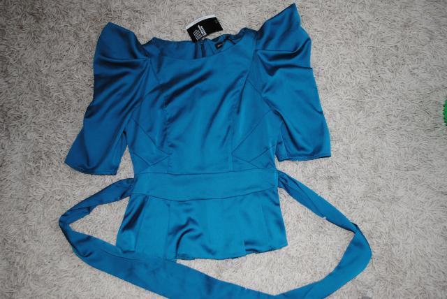 Nauja su etikete Atmosphere bliuskute su madingomis rankovemis. Spalva turkio, tikrai ne melyna, tik nuo blico tokia gavosi.