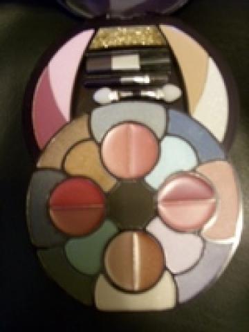 nauja dazu palete[tik rudi lupu dazai viena karta pabandyti] joje : 13akiu seseliu, 8lupu blizgesiai,2skaistalai, 2pudros[viena is ju suteikianti spindesi] ir kuno blizgesys[zele pavidalo] na ir zinoma teptukai[seseliams,skaistalams, pudrai ir lupom