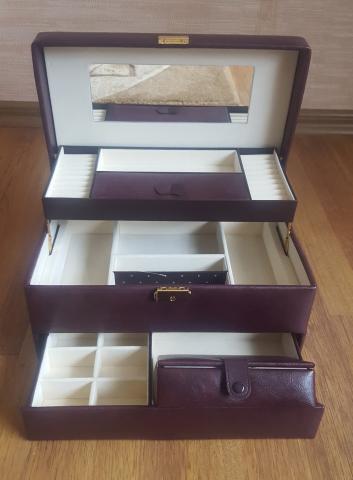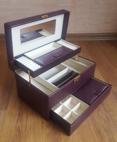 Nauja didelė tamsiai raudona papuošalų dėžutė