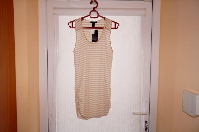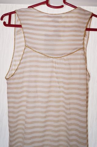 Ilgis 80 cm - ilgiausios dalies, krūtinė 45 cm. Viršuje krašteliai siuvinėti auksiniu siūlu. Apačioje šonuose paraukta. 91 proc viskozė, 9 proc (metalised yard).