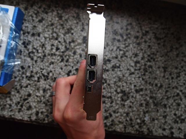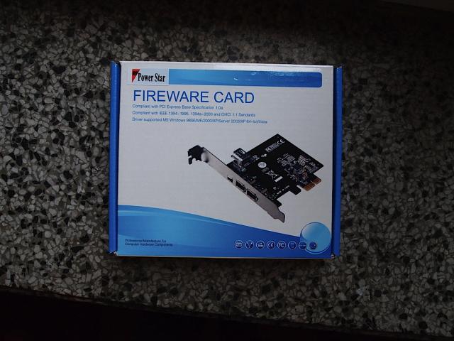 nauja vidinė firewire korta, nusipirkau ir po to pamaiau, kad nėra pas mane tokio lizdo. Ant dėžutės nupiešta ne tokia jungtis, kaip viduje esančios :) komplete: dėžė, fw korta (dvi fw 400 ir viena fw800 jungtis), ir fw laidas.