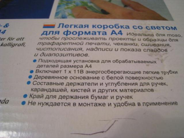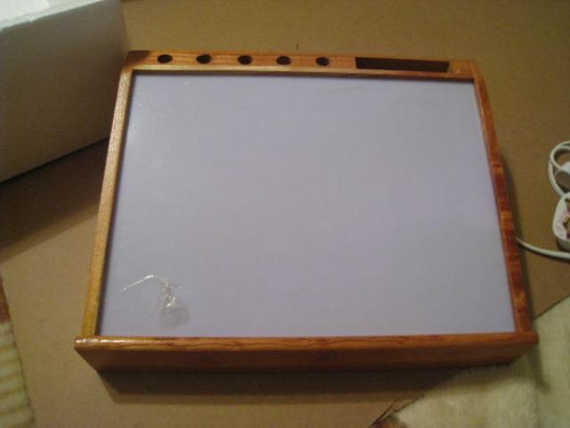 Šis energiją taupantis apšviestas darbastalis yra idealus modelių braižymo įrenginys. Galima kopijuoti reljefus, skiautes, kaligrafus ir skaidres. Dydis A4. Įmontuota 1 x 11W energiją taupanti lemputė-vamzdis. Medienos apdaila su baltu darbo vietos paviršiumi. Įmontuotos dėtuvės rašikliams, pieštukams, teptukams ir kitoms priemonėms Lengva naudotis. Anglijoje kaina 150LT
