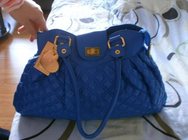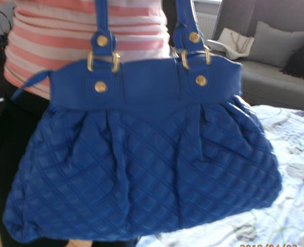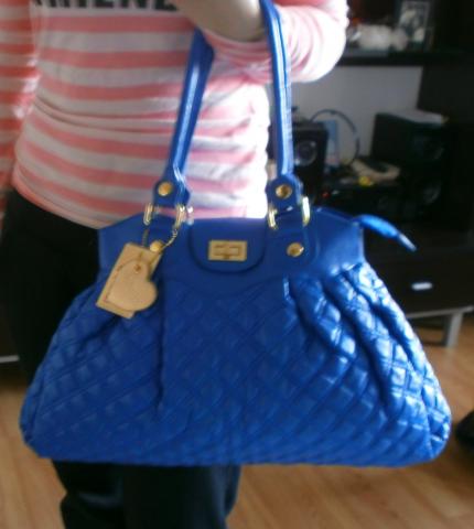 Fantastiskas rankinukas,talpus, visiskai naujas, dar su etiketemis, ryski melyna spalvyte, aukso spalvos detales, stampuota oda, labai grazus vidus. Siunciu:)
