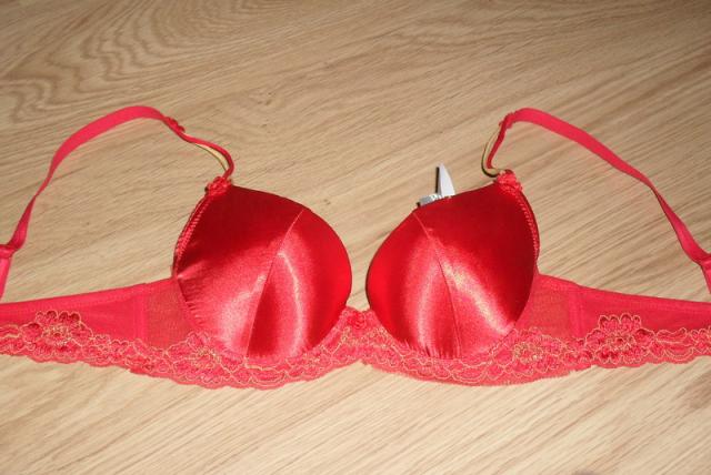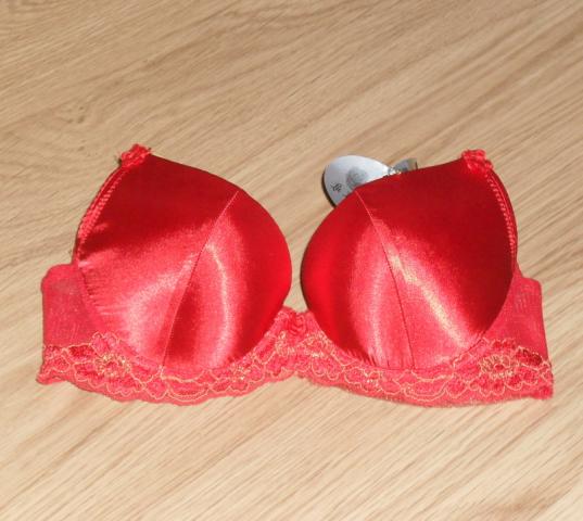 Visiskai nauja, su etiketem, su push up. Pati tarsi atlasine, labai grazios spalvytes :) yra trys eiles uzsegimu, petneseles priekyje dvigubos, o likusi dalis vienguba. Dydis 34/75.