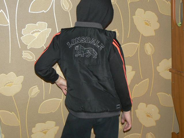 Nauja, stilinga Lonsdale liemenė 5-6 m. berniukui. 100% polisteris. Šilta, viduje su pūkeliu.