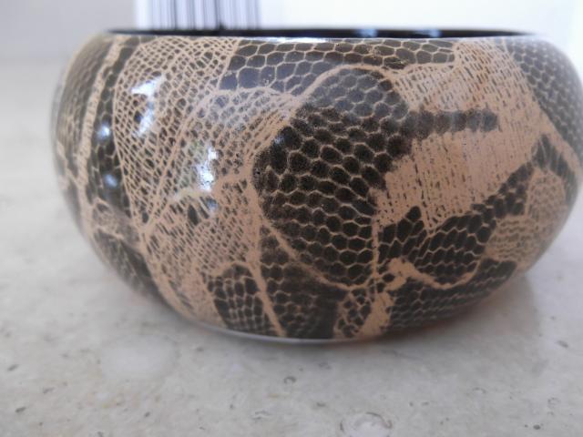 Žavinga apyrankė, smėlio spalvos. Plotis 6,5 cm, storis 4 cm.