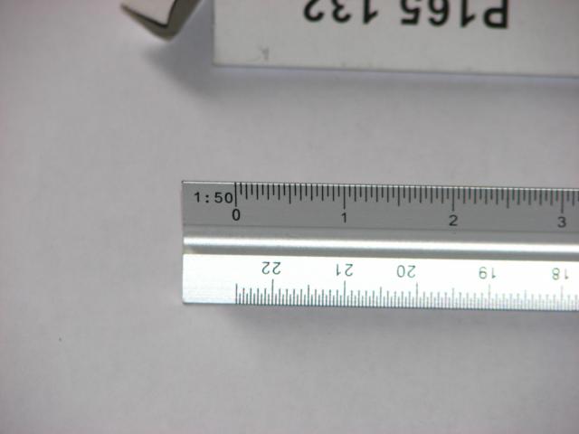 Nauja mastelinė liniuotė iš aliuminio. Mąsteliai 1:100, 1:50; 1:75, 1:25.