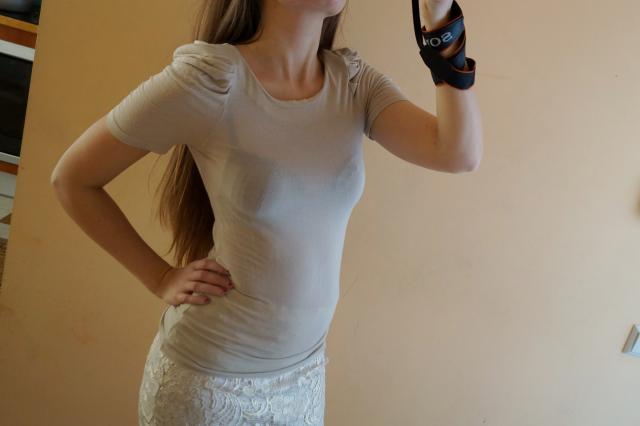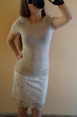 Labai daili, su petukais, parauktos rankovytės. Rašo dydį M, bet tiks ir xs-s. Ilgis 69 cm, krūtinė, liemuo 42 cm, tempiasi. 95 proc viskozė, 5 proc elastanas.