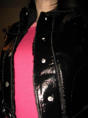 Nauja juoda blizgi striuke, dirbtines odos, viduje pasiltinimas. Ilgis 51cm. Visas rankoves ilgis 67cm, matuojant nuo pazasties 47cm. Peciai nuo vieno iki kito 40 cm. Nuo pazasties iki kitos 48 cm. Firma outline dydis uk 12 / M (bet istikruju siek tiek pamazinta, todel geriau tiktu nesiojancioms uk 10 dydi) . Moketa solidziai, parduodu, nes man i mazaja puse.