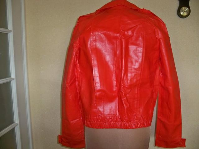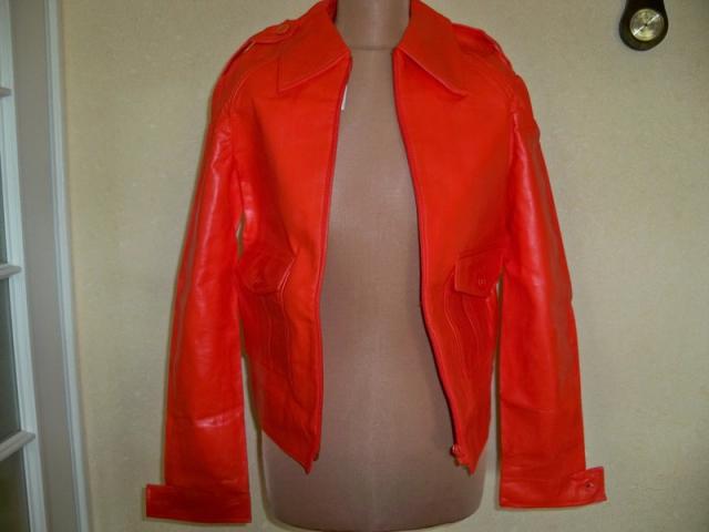 Visiškai nauja (su etiketėmis) ,oranžinės spalvos , odinė (nenatūralios) striukė. Pagal dydį tinka ir suaugusiam.Striukės ilgis 60cm, striukės plotis 93 cm.
