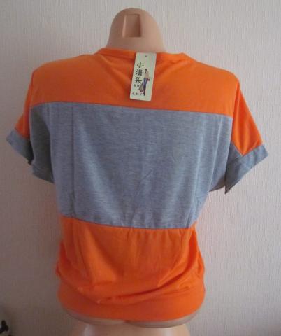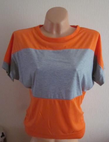 Nauja palaidinė su etikete. Dydis L. Spalvos - ryški oranžinė ir pilka. Apačioje yra guma. Tinka ir mažesniems dydžiams (S ir M) kaip oversized. Ilgis nugaroje 60 cm. Krūtinė telpa nuo A iki D, rankovės nuo krūtinės plačios "eina". Palaidinė tampri, tamposi.