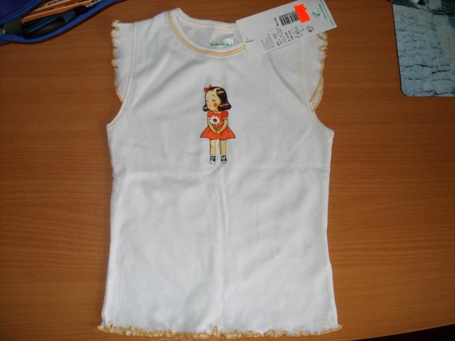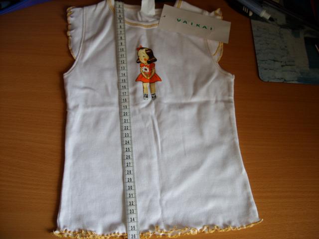 Visiškai nauja maikutė, tik tiek, kad pirkta prieš daug daug metų :D Deja nei man, nei sesei neteko jos užsidėti, nes abi išaugom.. :) Utenos trikotažas, 100% medvilnė. Balta maikutė, jokių dėmių neradau ant jos. Nuotraukose matosi maikutės išmatavimai, kadangi šiandien vaikai greičiau auga, tai parašytas dydis (98-104) gali netikti.. :)))