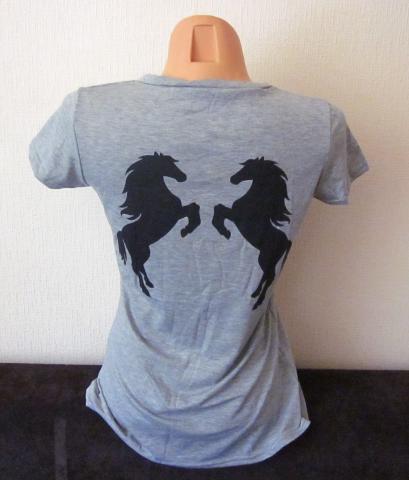 Nauja palaidinė su aplikacija nugaroje. Dydį rašo XL, bet jam labai aptempta, geriausiai tiktų L dydžiui. Ilgis 66 cm, krūtinės apimtis 47x2 cm (tempiasi iki 55x2 cm).