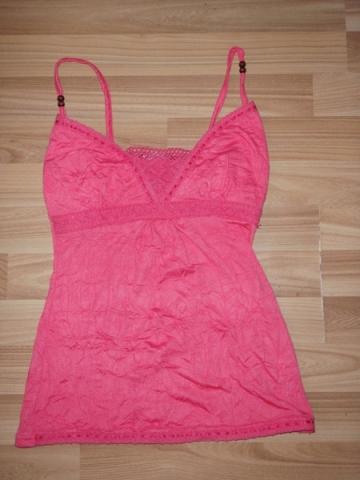 Ružavos spalvos palaidinė, kaip pirmoje nuotraukoje tik ryškesnė, glamžytos medžiagos, su nėrinukais, užsidėta tik karta, galima sakyti nauja, ant klubų, tikrai dailiai atrodo. mažytis defektas kairiajame kampe, siūliukas nutrūkęs, bet to nesimato beveik net