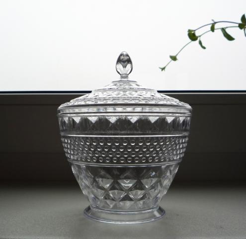 Nauja plastmasinė cukrinė. 12 cm aukštis, 10 cm skersmuo. Yra dvi vienodos.