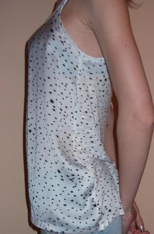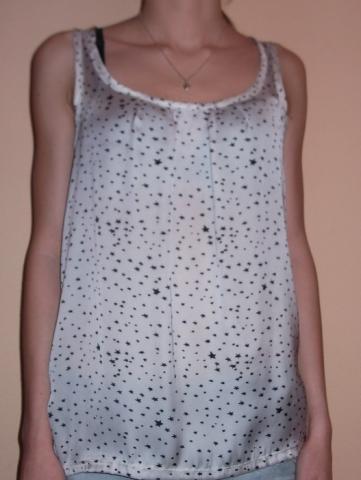 Nauja palaidinė, be jokių defektų. Apačioje platėjanti šiek tiek, su smulkiomis žvaigždutėmis. Priekyje švelni slidi medžiaga, o gale "maikinė", su per stuburą einančiomis sagutėmis. NEMAINAU!