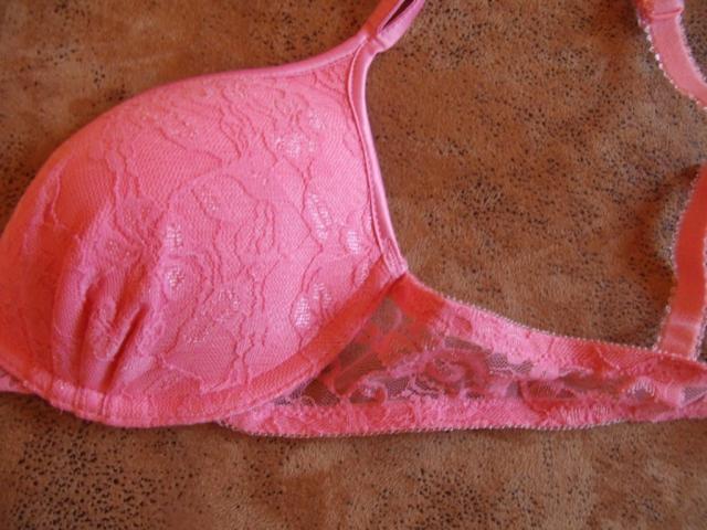 Nėriniais dekoruota rožinė Secret Posessions liemenėlė. Dydis 70A.
